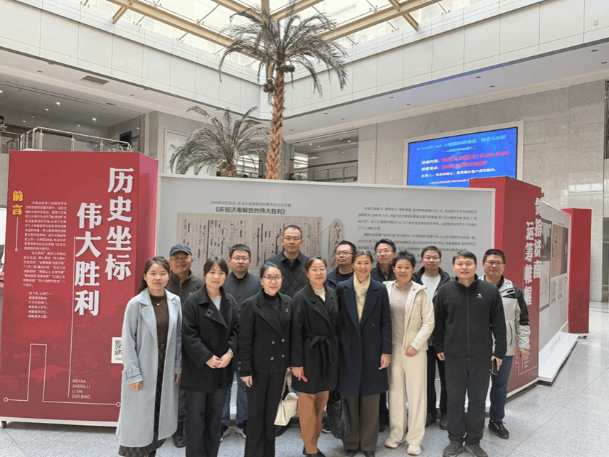 为深入学习贯彻党的二十届四中全会精神,传承红色基因、砥砺初心使命,11月13日,图学党支部组织全体党员走进学校图书馆参观“伟大胜利”济南战役史实展,开展“承红色荣光 绘精神图谱”主题党日活动。