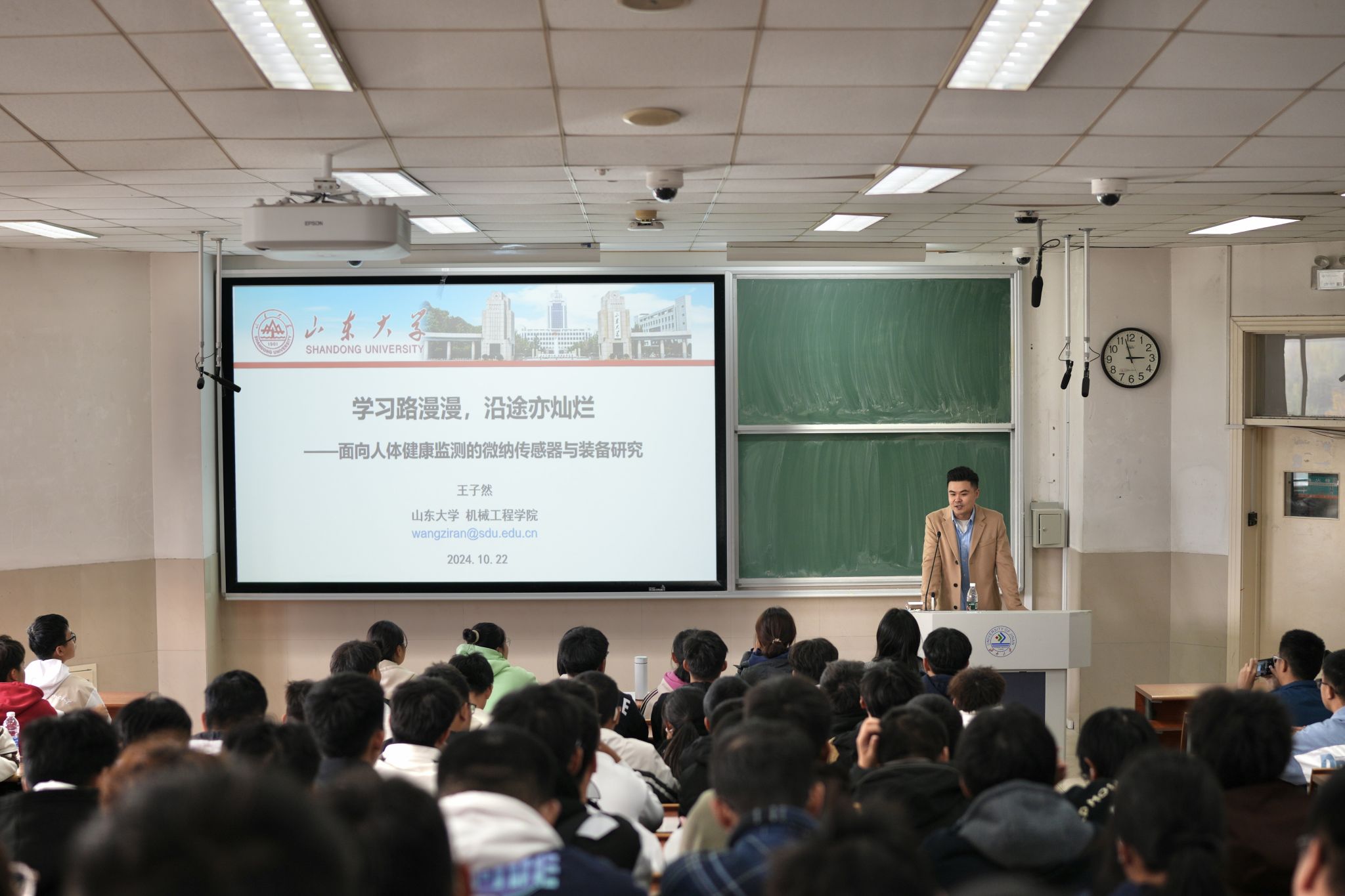 在11J302教室开展机械专业生涯规划与职业发展主题讲座,荣幸邀请了机械学院2016届优秀毕业校友王子然作为主讲人。讲座由学院党委副书记孙成政主持。