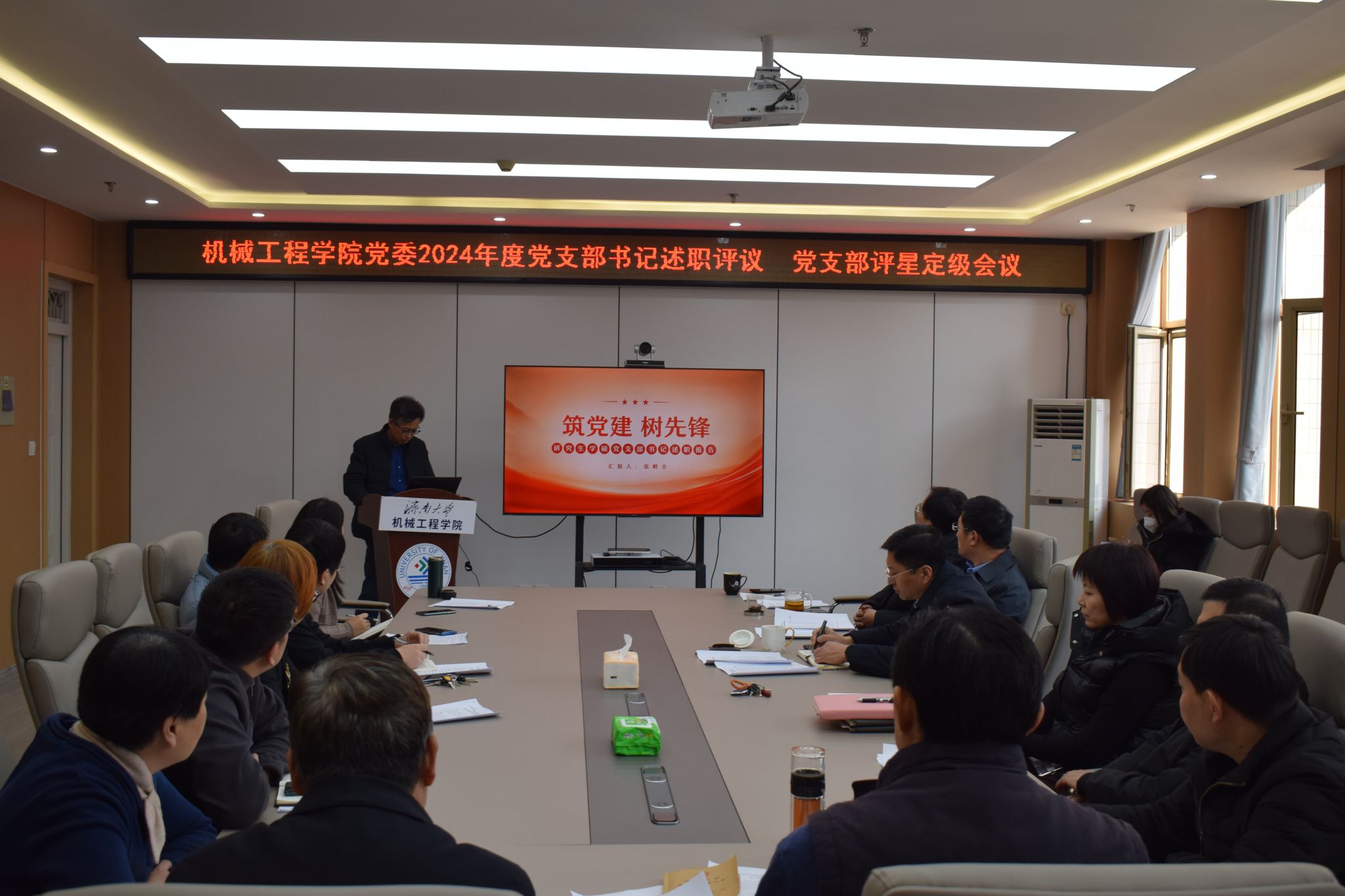召开2024年度党支部书记述职评议党支部评星定级会议。学院班子成员、全体党支部书记参加会议。